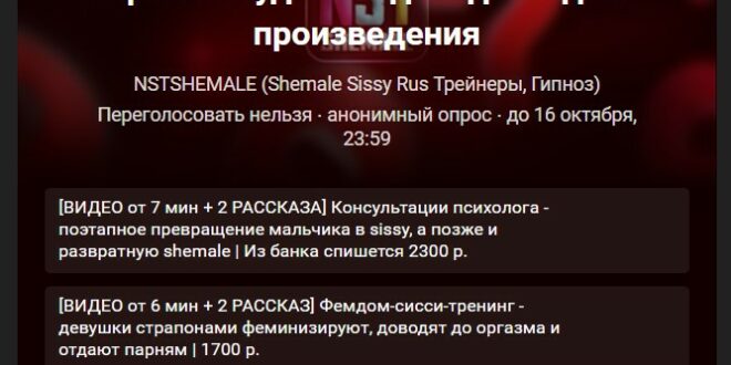 NstShemale – Сисси-Трейнеры, Гипноз, Мотивация на Русском 🔒 Официальный сайт | Сисси-мотивация (sissy trainers, hypno, lesson, tranny made), истории, уроки, гипноз. Русскоязычное сообщество для shemale, tranny.