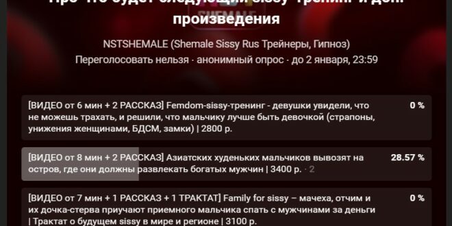 1. Рассказы — текстовые секс-истории на тему sissy (примеры есть на сайте и в ВК);
