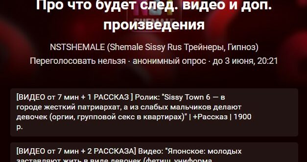 NstShemale – Сисси-Трейнеры, Гипноз, Мотивация на Русском 🔒 Официальный сайт | Сисси-мотивация (sissy trainers, hypno, lesson, tranny made), истории, уроки, гипноз. Русскоязычное сообщество для shemale, tranny.