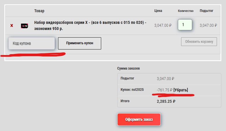 Работает как на одиночные позиции, так и на КОМПЛЕКТЫ, создавая двойную экономию: