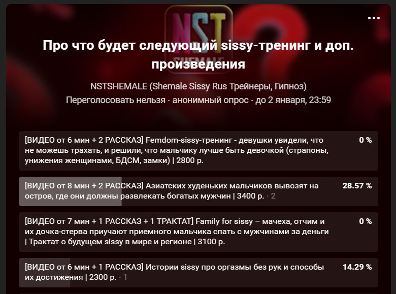 NstShemale – Сисси-Трейнеры, Гипноз, Мотивация на Русском 🔒 Официальный сайт | Сисси-мотивация (sissy trainers, hypno, lesson, tranny made), истории, уроки, гипноз. Русскоязычное сообщество для shemale, tranny.