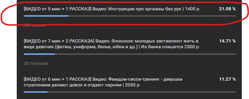 Лапочки 💖 Завершился опрос по финансам из банка. В результате голосования, победил пункт: [ВИДЕО от 5 мин + 1 РАССКАЗ]. Видео: Инструкции про оргазмы без рук | 1400 р. Из банка списывается 1400 р., а позже выйдет видео на вышеуказанную тему. Пока оно будет делаться, появится еще и секс-сисси-рассказ. ИНФО ПО ПОДДЕРЖКЕ В копилочке: 1565,1 / 3000 р. (что это?) В банке сообщества: 38817 / 1000 р. (что …