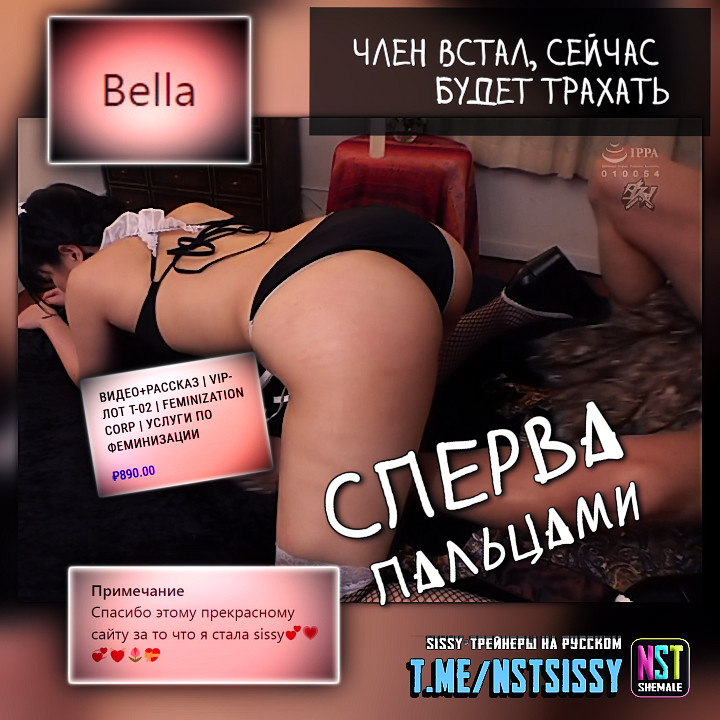 Bella, привет 💖 ты пишешь:   “Спасибо этому прекрасному сайту за то что я стала sissy“   Тебе спасибо за такие хорошие слова и за просмотр видео. Рада, что нравится. А теперь еще спасибульки за покупку VIP-видео и рассказа T-02 про услуги феминизации Приятно ознакомиться 💰 В коп.: 2292,1 / 3000 р. (i) 🏦 В банке: 104939 / 1000 р. (i)