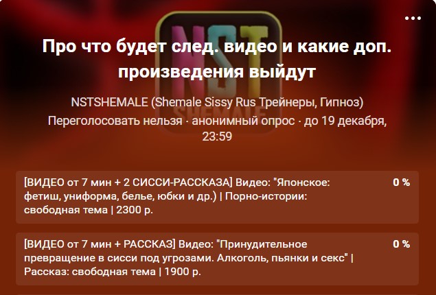 NstShemale – Сисси-Трейнеры, Гипноз, Мотивация на Русском 🔒 Официальный сайт | Сисси-мотивация (sissy trainers, hypno, lesson, tranny made), истории, уроки, гипноз. Русскоязычное сообщество для shemale, tranny.