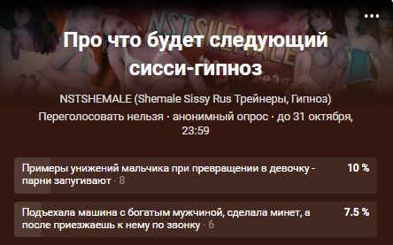 NstShemale – Сисси-Трейнеры, Гипноз, Мотивация на Русском 🔒 Официальный сайт | Сисси-мотивация (sissy trainers, hypno, lesson, tranny made), истории, уроки, гипноз. Русскоязычное сообщество для shemale, tranny.
