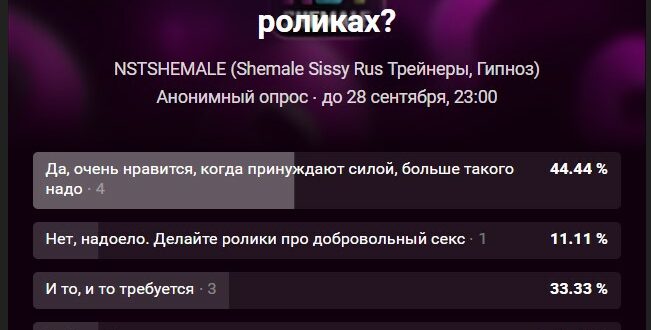Лично мне, очень нравится жанр принуждения sissy. Про добровольный секс также есть выпуски и еще будут. Что касается жизни, то полностью согласна. Но, давайте повторно проведем опрос на данную тему.